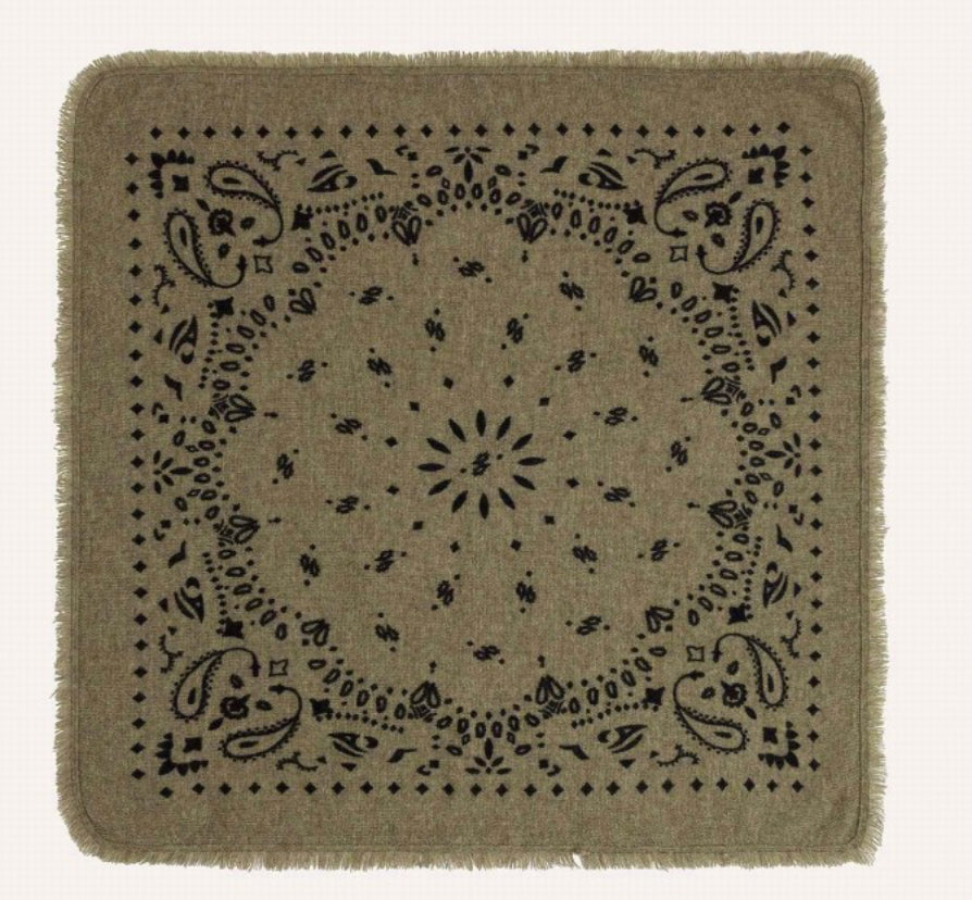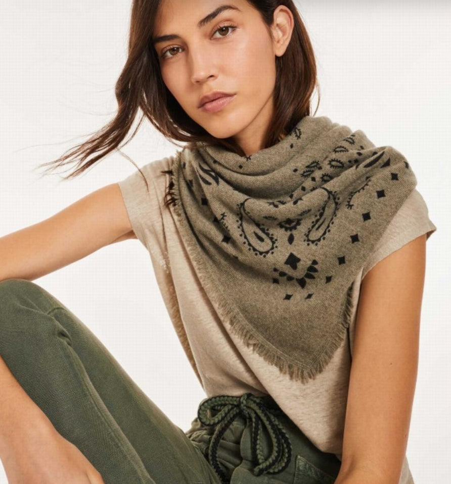 Grand Bandana Hachiko Imprimé Kaki Chiné Kujten Femme Grand bandana en cachemire de la marque KUJTEN. Avec ses grandes dimensions, c'est l'accessoire parfait pour cet hiver! Un modèle iconique et intemporel des collections KUJTEN. Coloris kaki chiné imprimé, 100% cachemire. Son tricotage lui apporte douceur et légèreté. Un accessoire en cachemire tendance et facile à porter en toute circonstance. Bandana en cachemire créé à Paris et tricoté en Mongolie. Venez découvrir notre sélection de la marque Kujten Femme dans notre boutique Michèle et Noëlle à Bastia ou sur notre eshop www.michelenoelle.com Coloris: kaki chiné. Dimensions: 90 x 90 cm. Composition: 100% cachemire, 2 fils tricotage jersey imprimé.