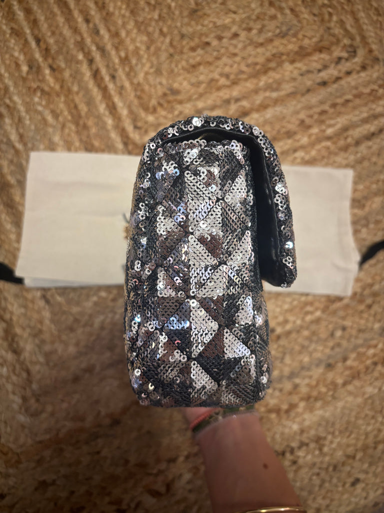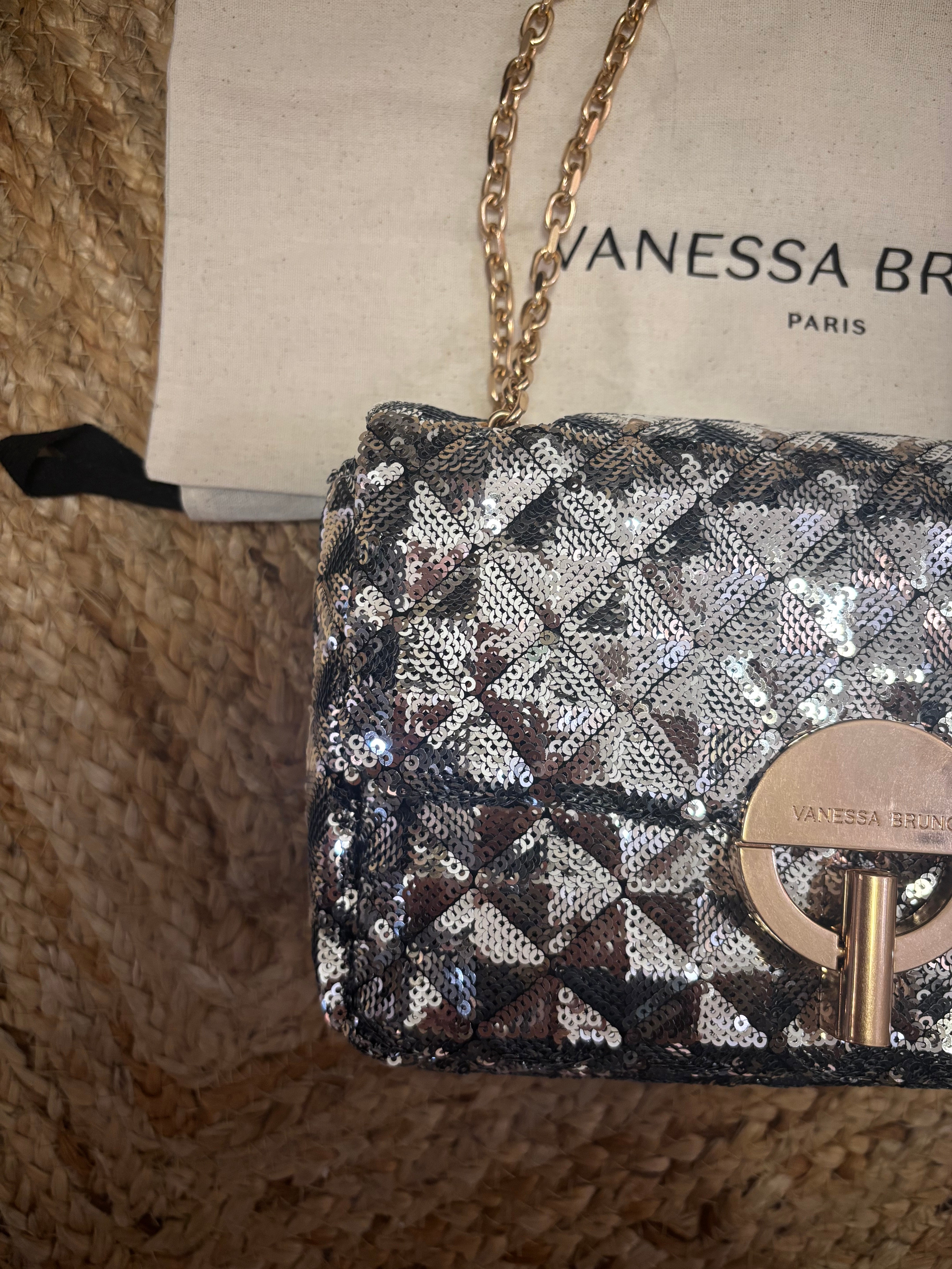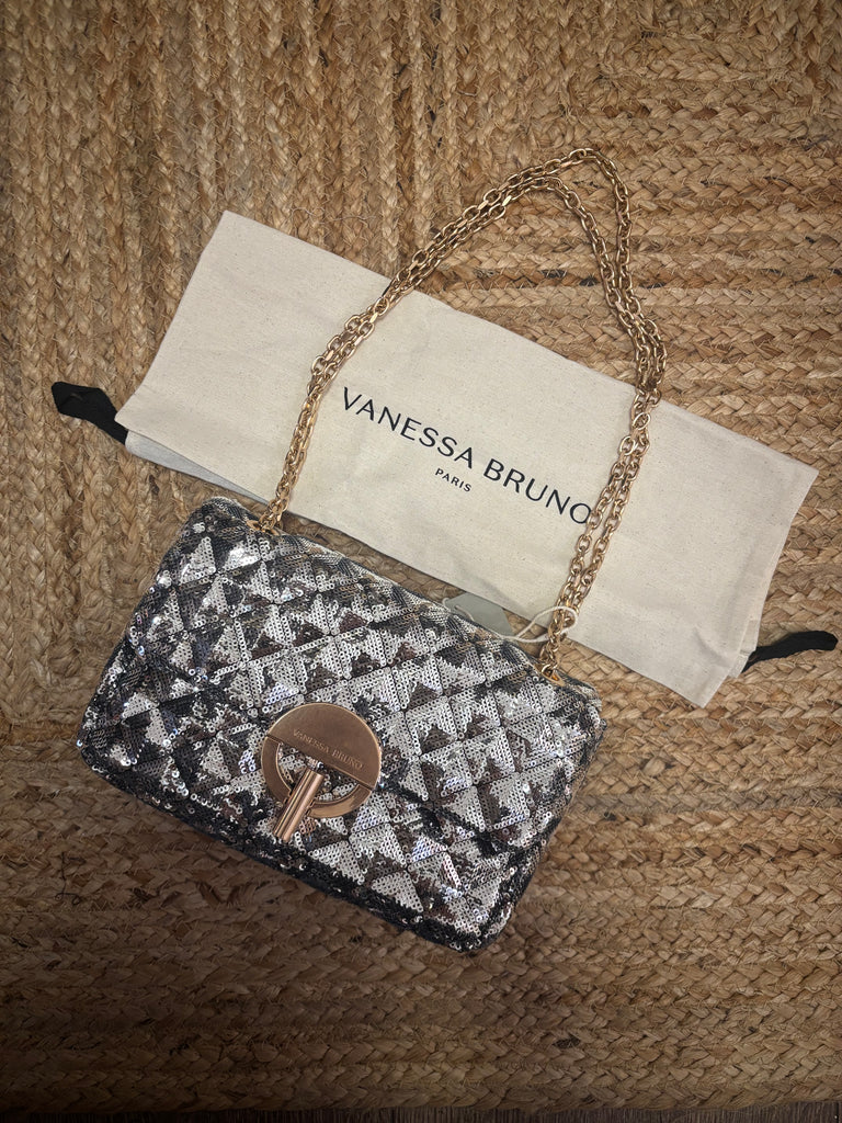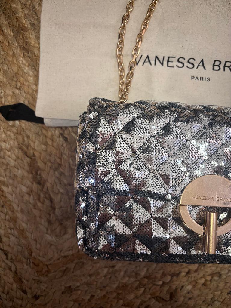 Le sac Moon, emblématique de la maison Vanessa Bruno fait partie de ces iconiques que l'on ne présente plus. Chic et versatile, ce modèle à la ligne délicate s'habille ici d'une multitude de sequins pour un effet très chic.