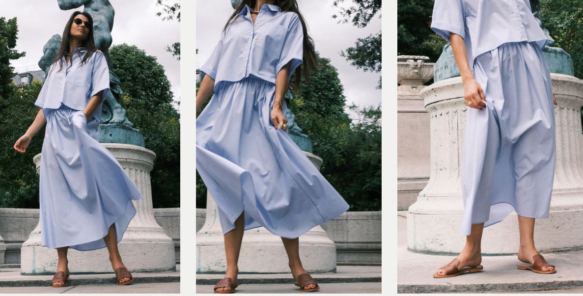 Cette jupe longue est réalisée en popeline de coton d’Italie.