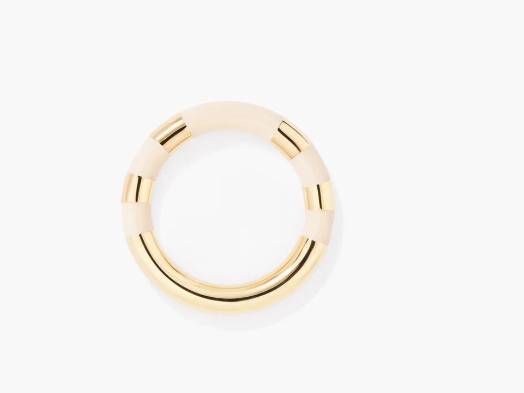 Bague Positano à rayures ivoire en résine et dorée à l'or jaune 750/1000.