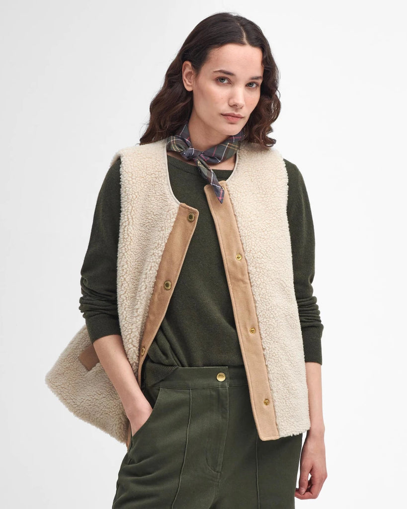 Que vous soyez à la recherche d'une chaleur optimale ou de la tenue confortable ultime, le Barbour Dulsie Liner est le choix parfait. Fabriqué à partir d'une fourrure de nounours somptueusement douce, ce modèle est parfait pour se superposer sur des T-shirts et des pulls au fur et à mesure que les saisons changent et pour s'associer sous des vestes pour plus de chaleur, grâce à son design discret sans col.