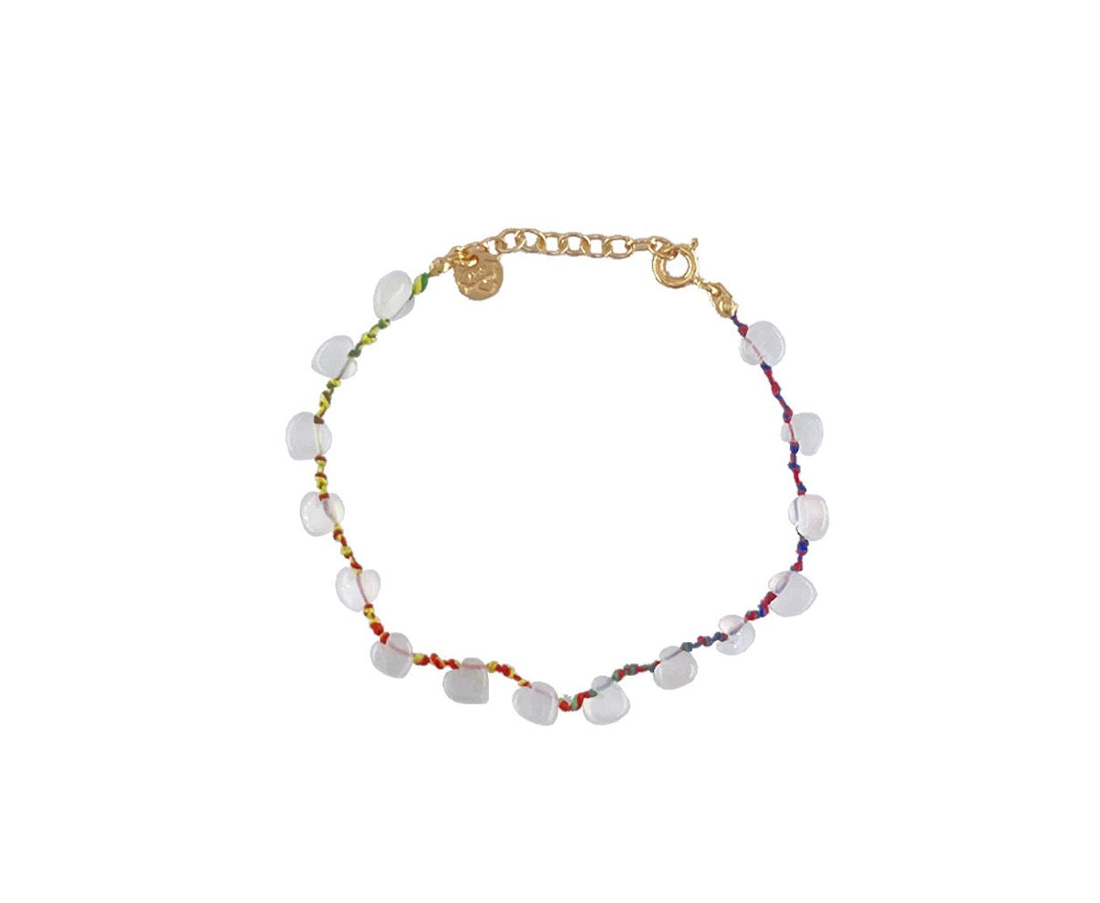 Bracelet Cœur en Pierre de lune et cordon multicolore.