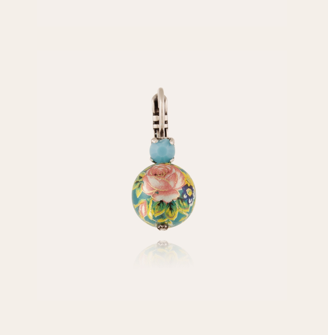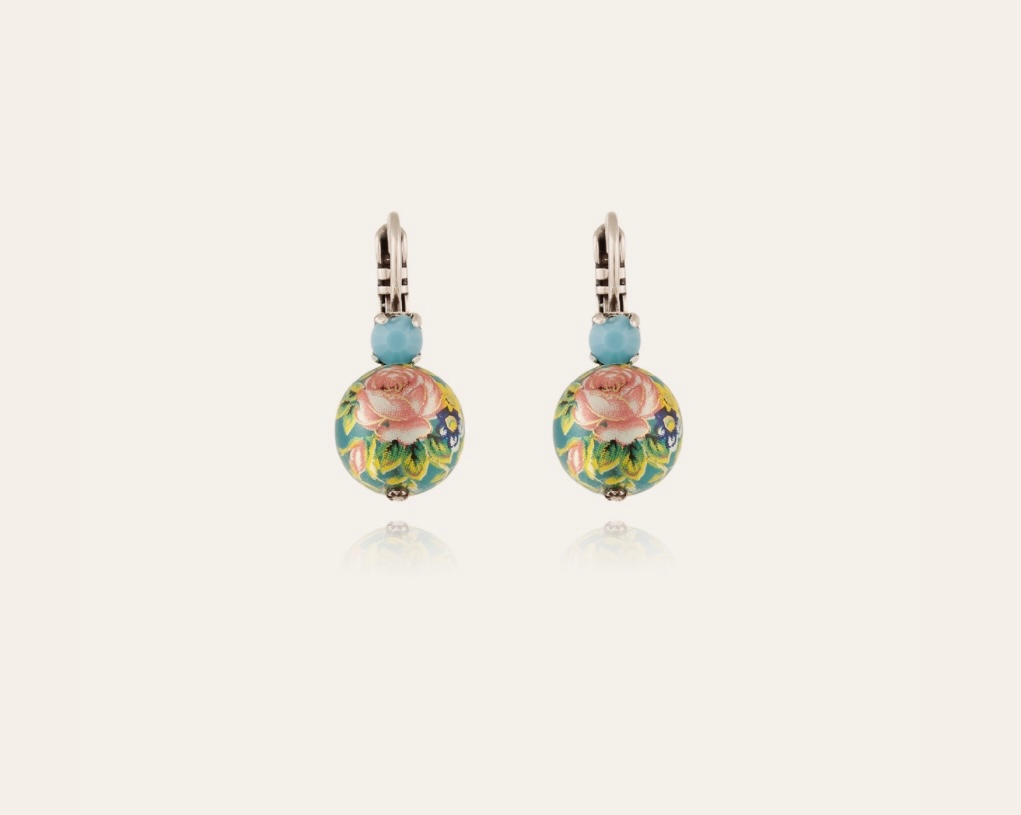 Incontournables et intemporelles (Boule Chinoise), boucles d'oreilles Decalco argentées, en résine colorée et habillées de strass.