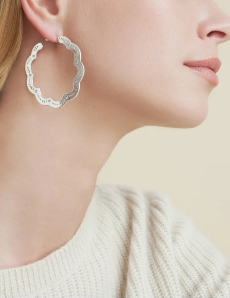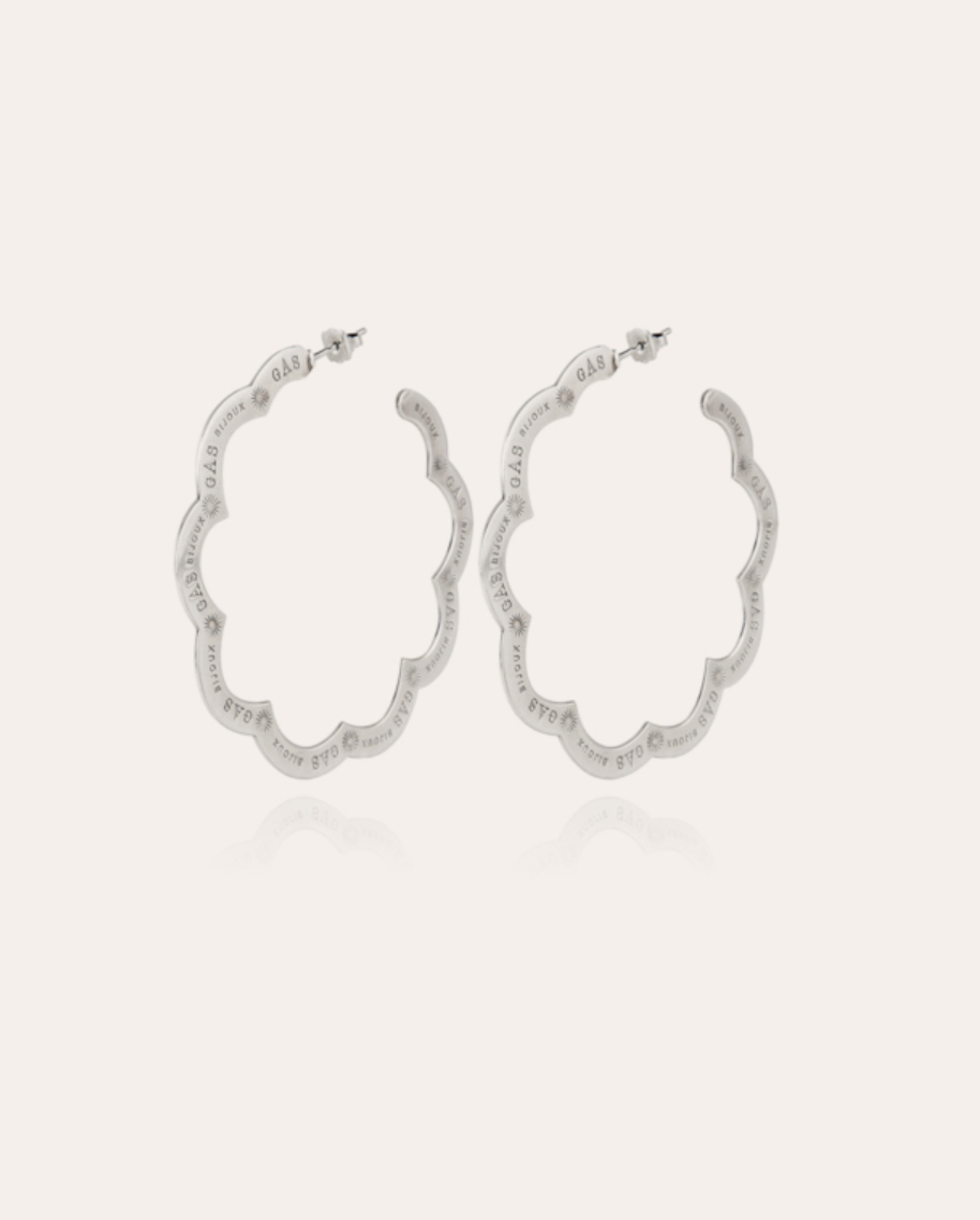 Créoles argentées et finement gravées du logo Gas Bijoux.