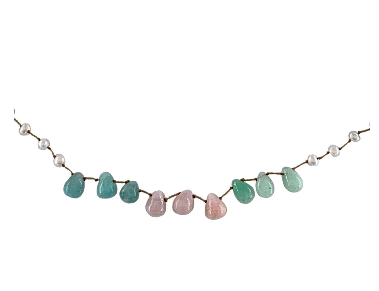 Collier Goutte en amazonite, chrysoprase, opale et perle naturelle.
