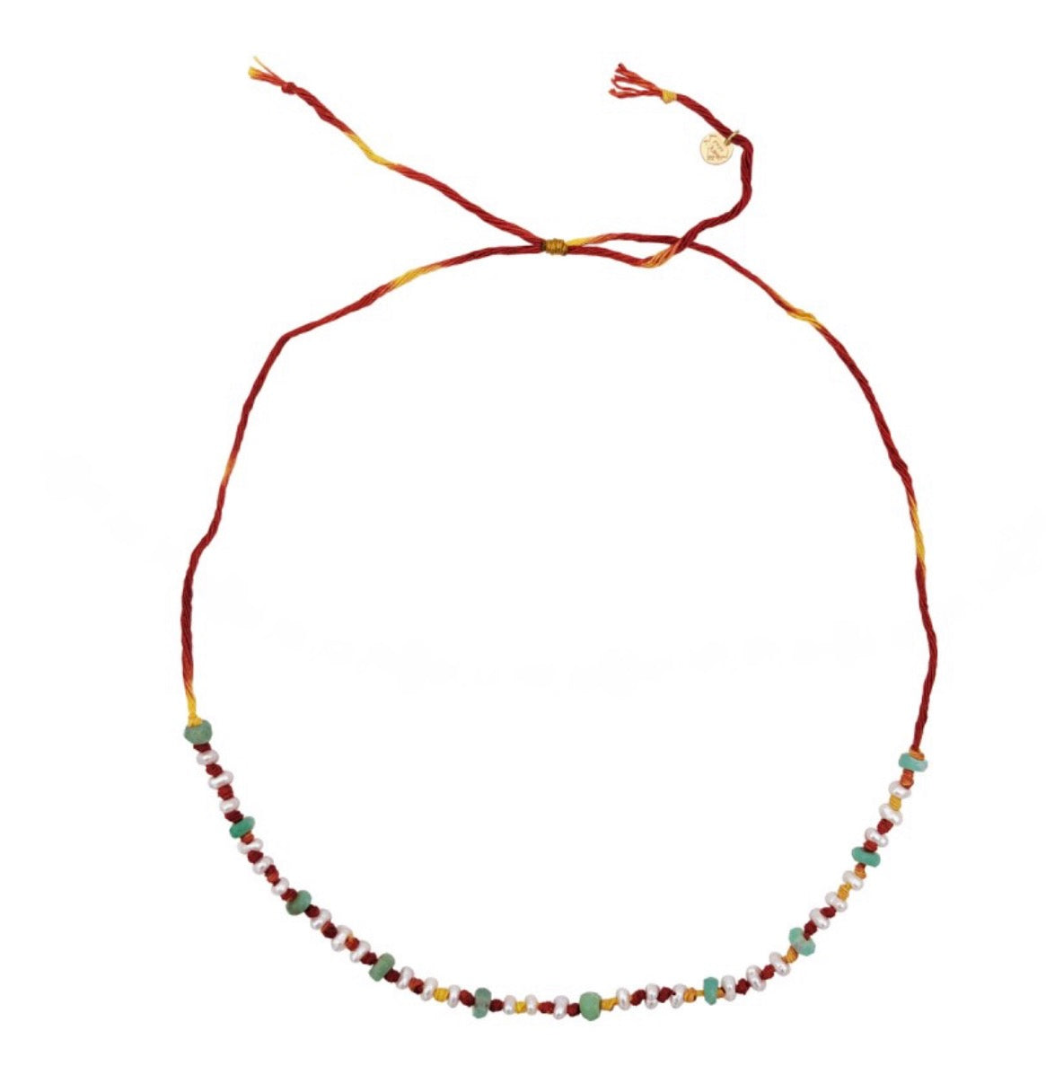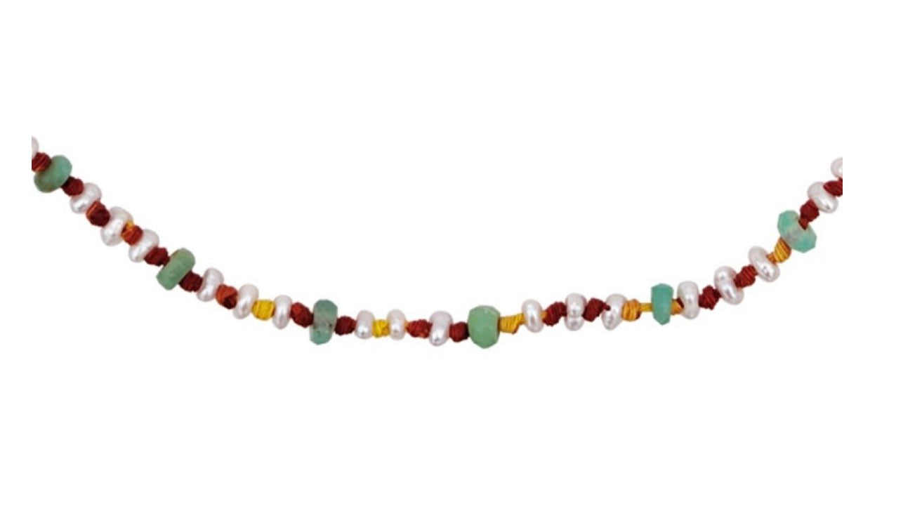 Collier Candies en perle naturelle d'eau douce, chrysoprase et cordon sacré indien