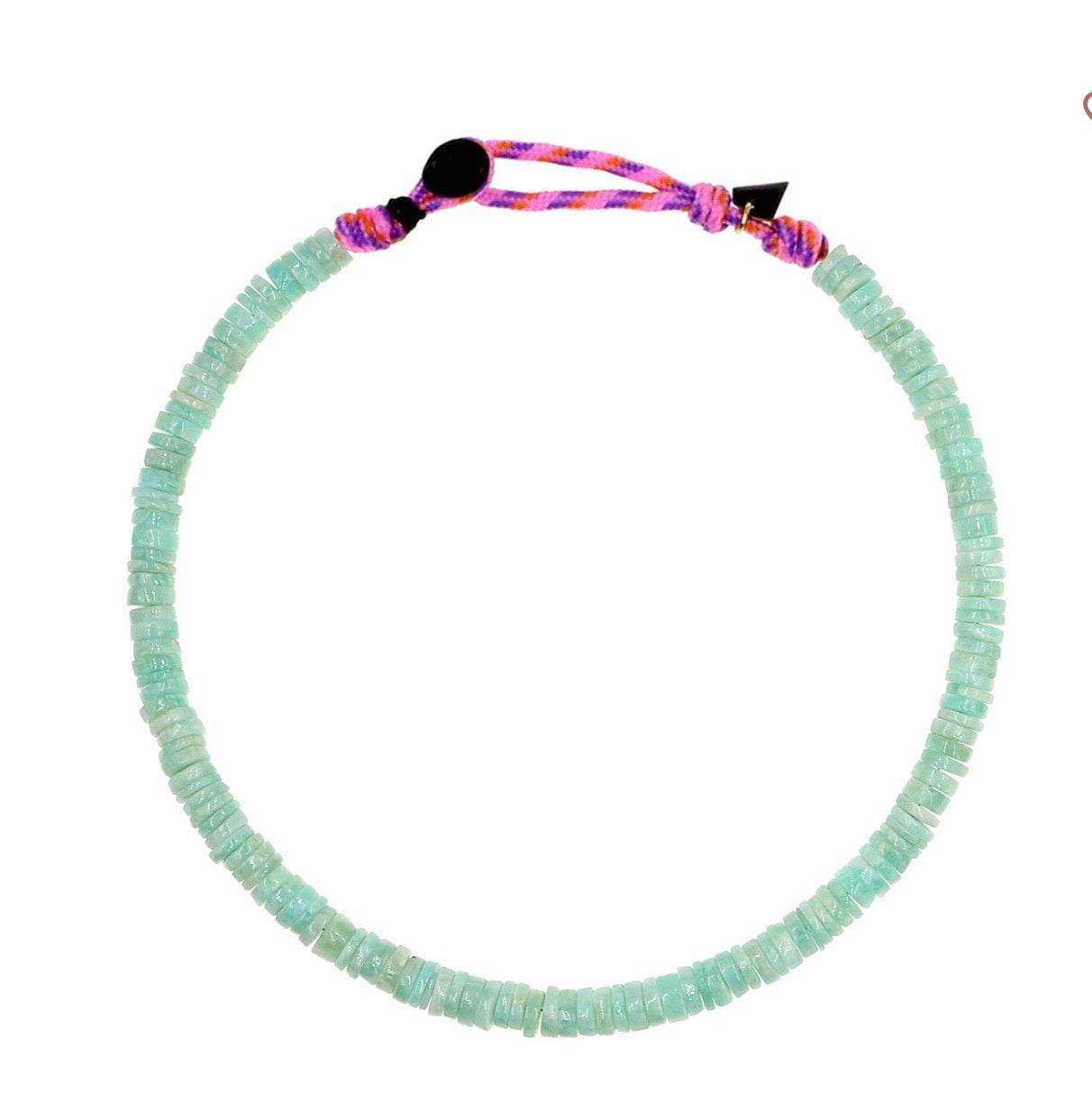 Collier Puka simple en amazonite. L'amazonite équilibre les énergies ainsi que de nombreux aspects de la personnalité. Ce cristal permet d’alléger l’inquiétude et de dissiper les énergies négatives.