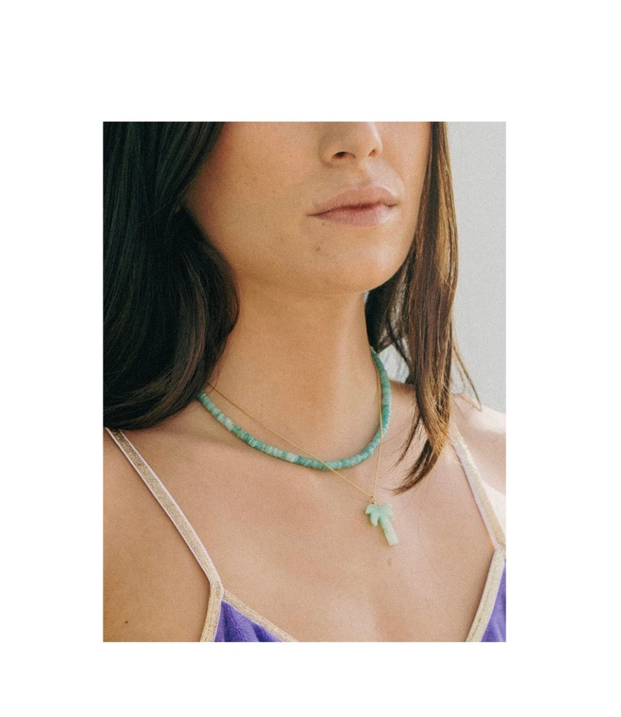 Collier puka facettes amazonite