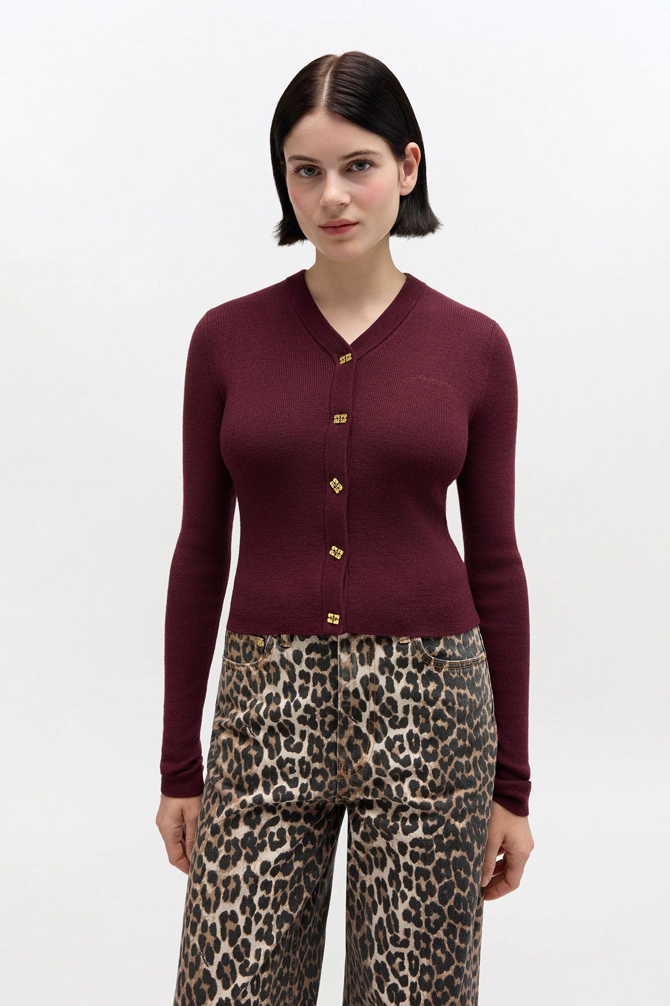 Ce cardigan est doté d’une encolure en V, d’une fermeture à boutons sur le devant et d’un logo GANNI brodé.