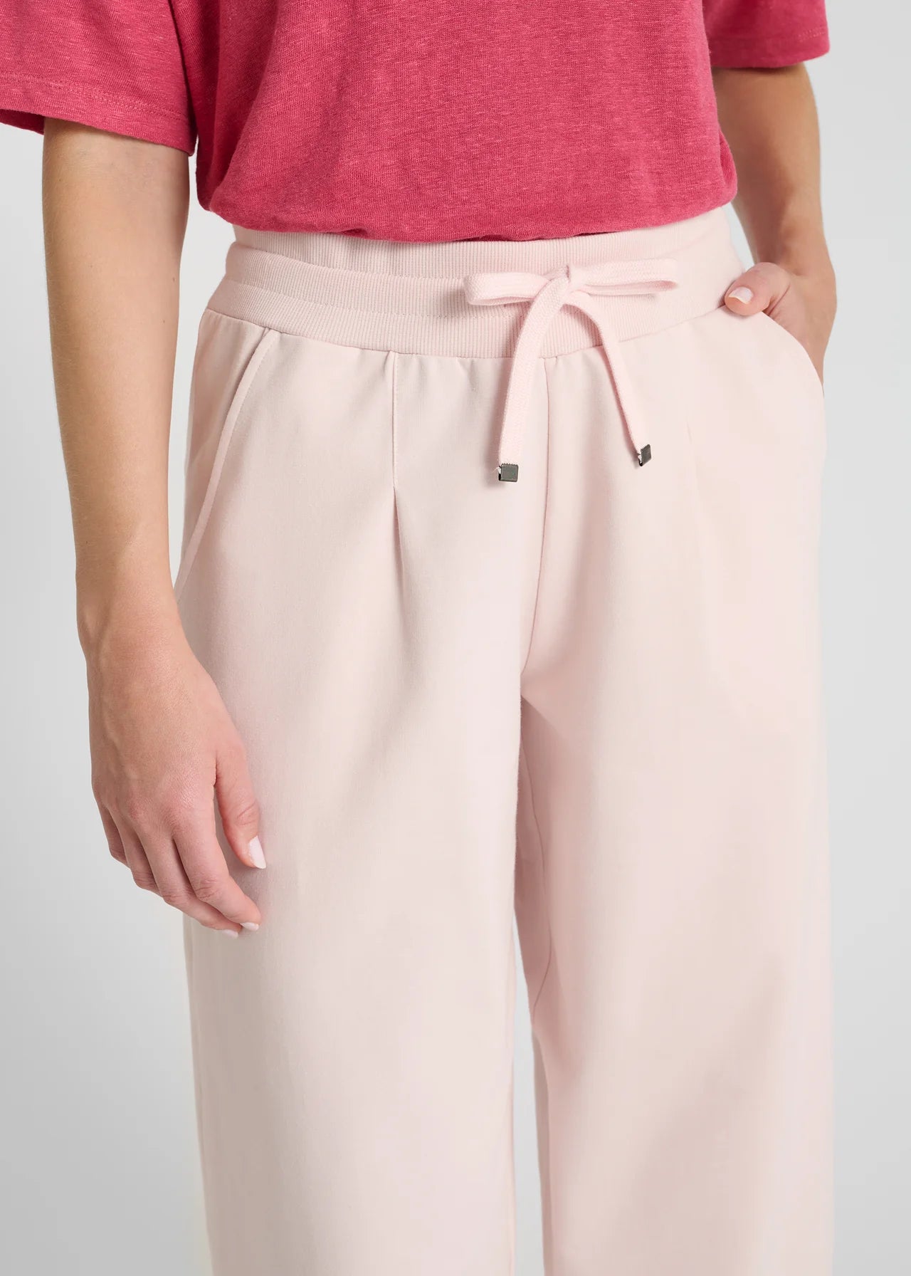 Ce jogging femme revisite l’allure casual avec une coupe carotte structurée et confortable. Confectionné en molleton, il offre un porté souple et agréable. La taille est soulignée par une ceinture élastiquée, ajustable grâce à des liens, pour un maintien modulable. Des plis couchés sur le devant apportent de la tenue à la silhouette, tandis que les poches à l’italienne renforcent son esprit fonctionnel. Au dos, une poche passepoilée vient parfaire le design avec discrétion.