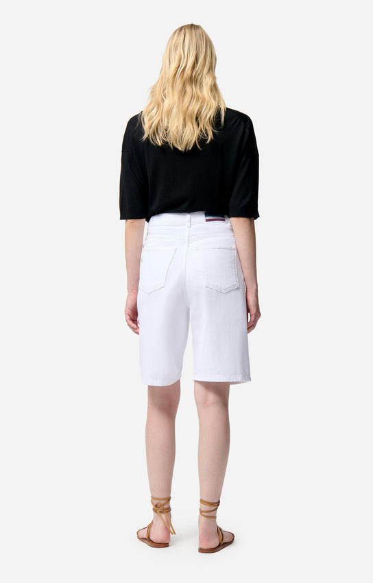 Le short long taille haute Elouan revisite le classique bermuda en jean avec une coupe ample et structurée, offrant une silhouette élégante et décontractée. Sa longueur au-dessus du genou assure un équilibre parfait entre confort et modernité, tandis que sa taille haute allonge visuellement la silhouette. Confectionné en coton, il garantit une tenue impeccable tout au long de la journée. Polyvalent, il s’associe aussi bien à une chemise fluide pour un look sophistiqué qu’à un t-shirt basique pour une allure plus casual. Un essentiel du vestiaire moderne, idéal pour un style minimaliste et intemporel.