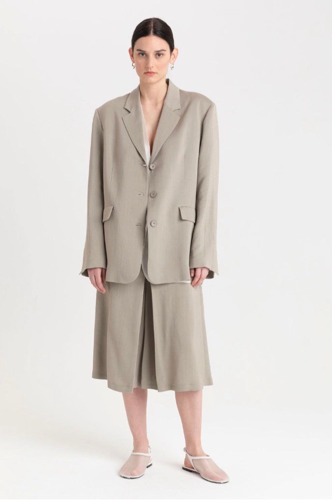 Bermuda greige, coupe jupe culotte, très agréable à porter et fera un  ensemble chic avec le blazer.