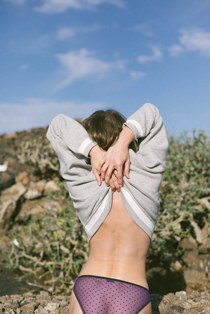 - En Purple Dots : tulle transparent floqué surmonté d'un élastique noir shiny