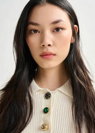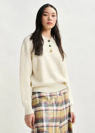 Polo à la coupe décontractée, confectionné à partir d'un mélange de laine luxueux infusé d'un brin de cachemire pour cette douceur subtile. Les détails en tricot vertical créent une texture raffinée, tandis que l'emmanchure basse donnent une allure décontractée. Avec son trio éclectique de boutons au niveau de la patte, ses bords côtelés et son grammage moyen, ce haut est un basique facile à associer.