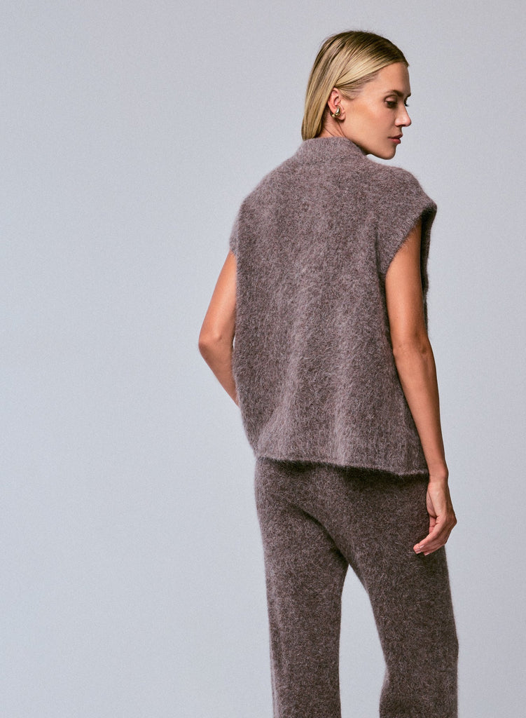 Pull Marron Col Montant Sans Manches en Alpaga / Polyamide / Elasthanne est confectionné dans une matière naturelle, douce et confortable, idéale pour un usage quotidien.