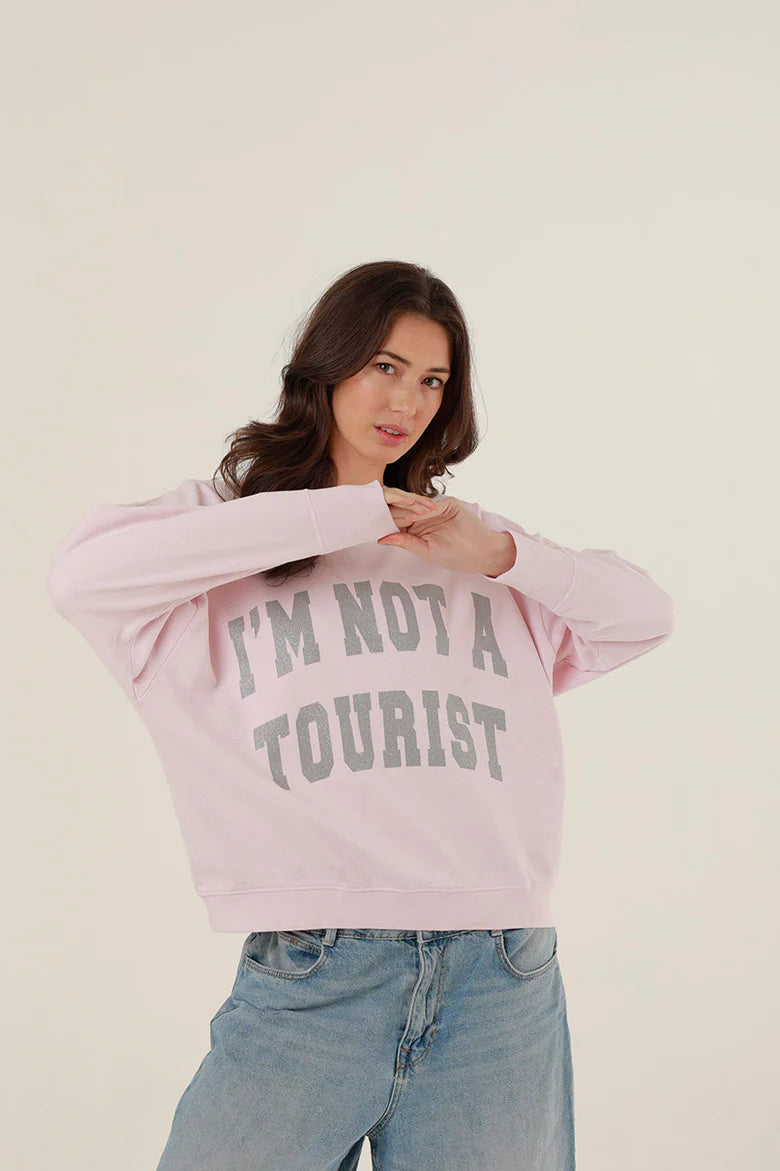 • Sequins « I’m not a tourist » sur le devant