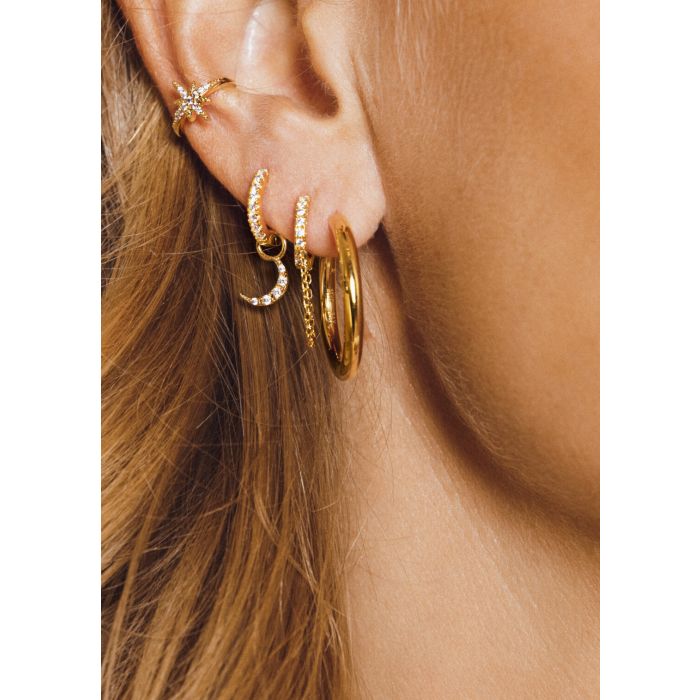 Le faux piercing PICCADILLY CIRCUS de MYA-BAY, doré à l’or fin recyclé 24 carats ou recouvert d’argent, s’illumine de fines pierres et d’une petite étoile au charme discret. Un bijou sans piercing qui se clipse en un geste pour upgrader instantanément votre style.