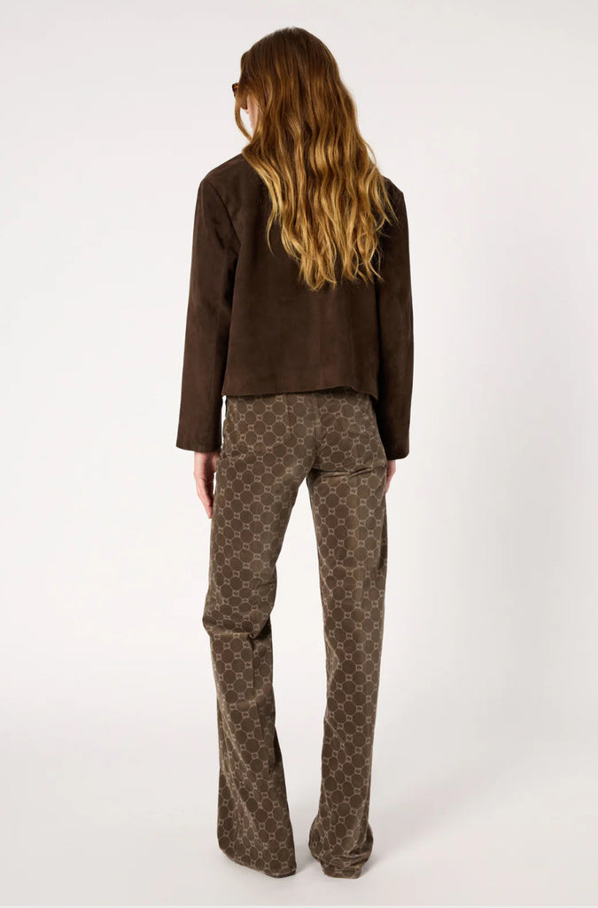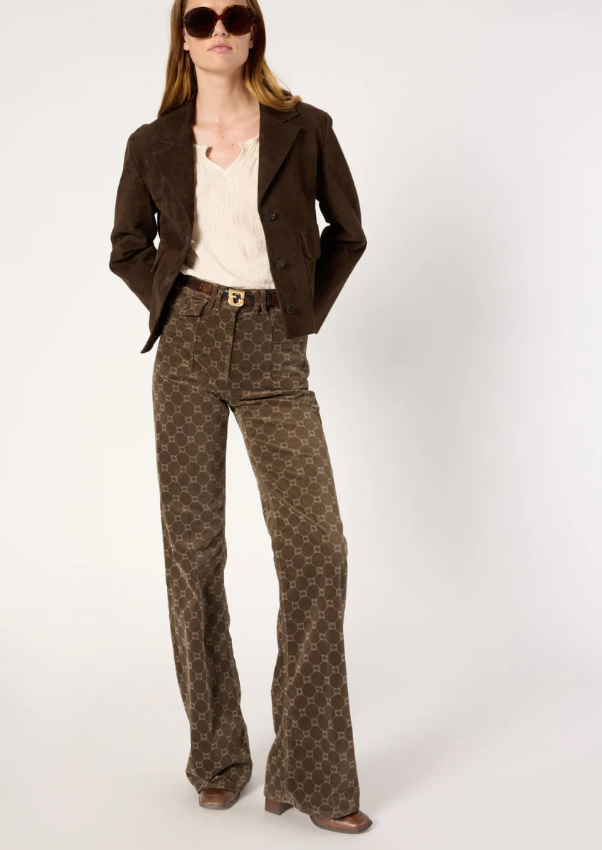Esprit chic et tendance pour cette version velours du jean Anna, décliné dans un joli marron taupé et réhaussé du monogramme GD en all over. Sa forme flare allongera toutes les silhouettes.