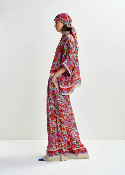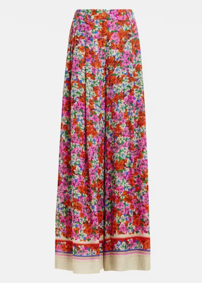 Réalisé en soie mélangée, ce pantalon à imprimé fleuri présente des coutures latérales incurvées soulignant les larges jambes fluides. Il est doté de deux poches passepoilées à l'arrière, de poches italiennes à l'avant, de passants de ceinture et d'une fermeture zip et bouton.
