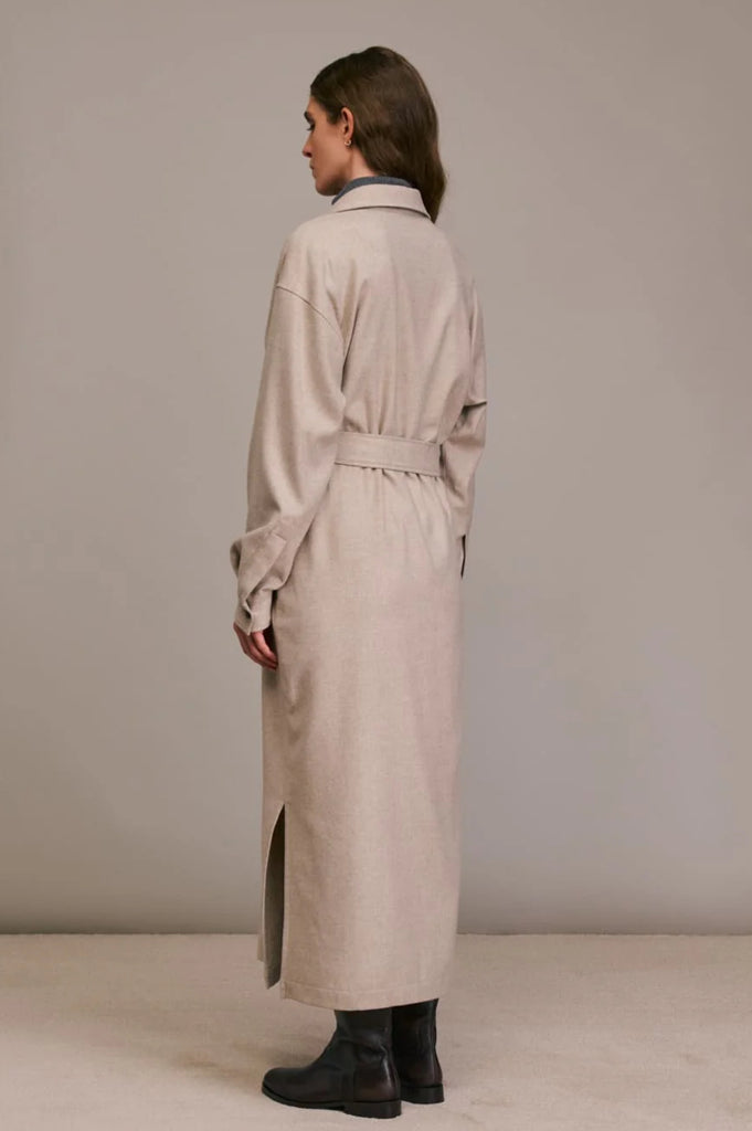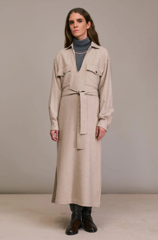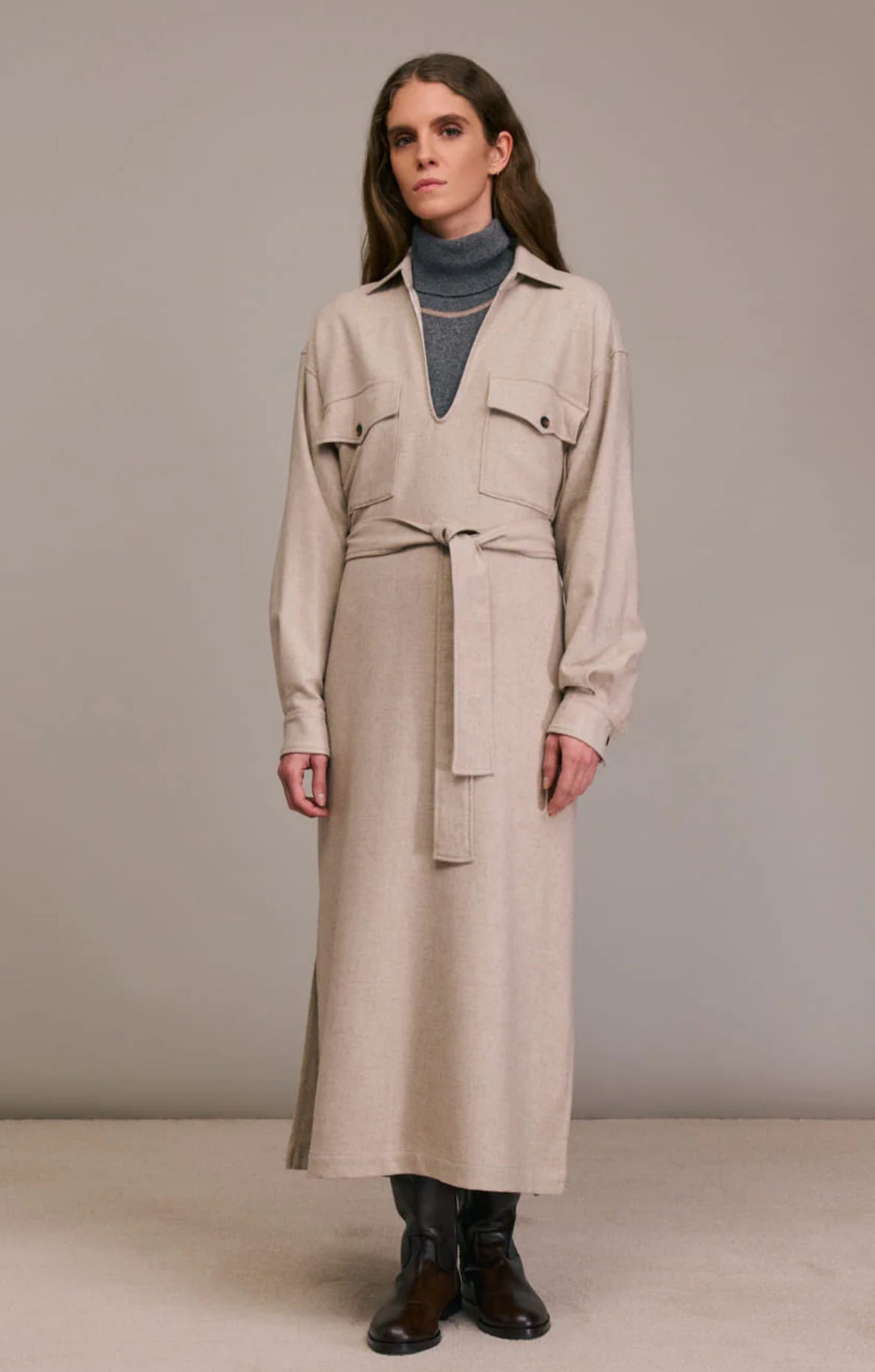 Robe pull grand col et pied de col à poches plaquées poitrine à rabat avec bouton