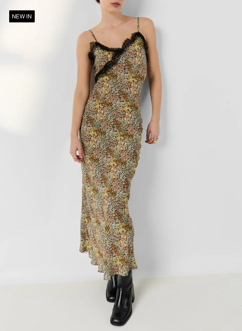 Esprit glamour et romantique pour cette robe longue à bretelles ornée de fleurs et de dentelle. Elle est confectionnée dans une matière fine au toucher très doux. Son coloris kaki est réhaussé de fleurs multicolores. Elle se portera le jour avec une veste en jean, ou le soir avec un blazer.