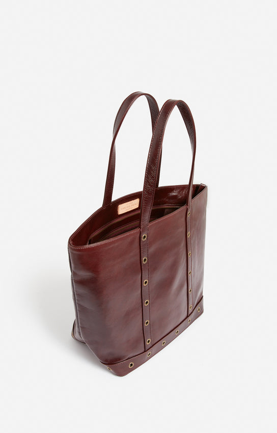 Pensé pour le quotidien, ce cabas en cuir craquelé joue sur les contrastes entre brillance subtile et détails métalliques. Fonctionnel grâce à sa fermeture zippée, il conjugue élégance contemporaine et praticité.