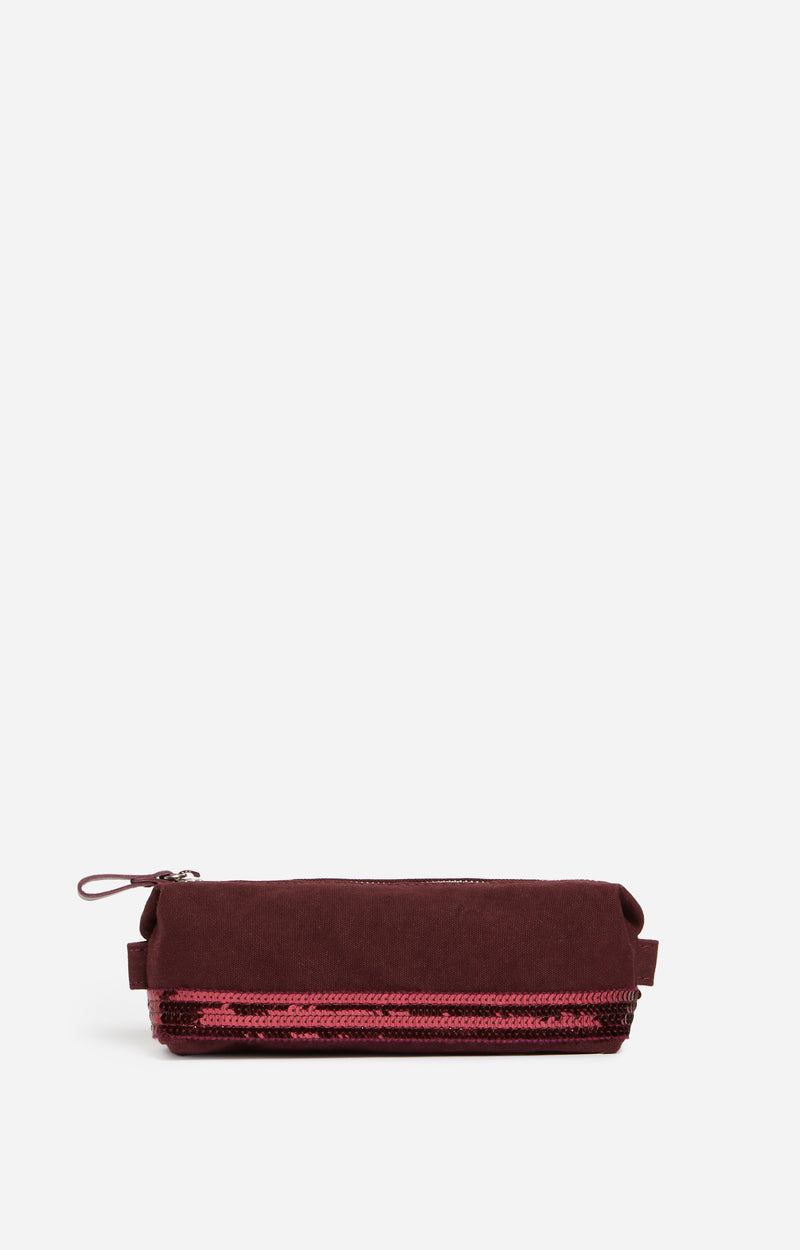 Cool et élégante à la fois, cette trousse d'écolier signée Vanessa Bruno reprend les codes emblématiques de la maison. Confectionnée en toile et ornée de sequins, cette pièce zippée est idéale pour transporter tous vos crayons et stylos avec style.