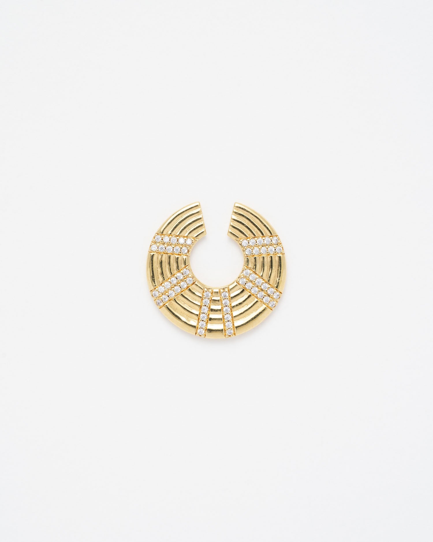 À porter seul ou en accumulation, l'Earcuff Astra Black complète parfaitement les autres earcuffs et boucles d'oreilles de SIGAL. Elle se compose d'une forme circulaire structurée, ornée de strass noirs disposés en fines lignes sur un anneau en laiton doré.