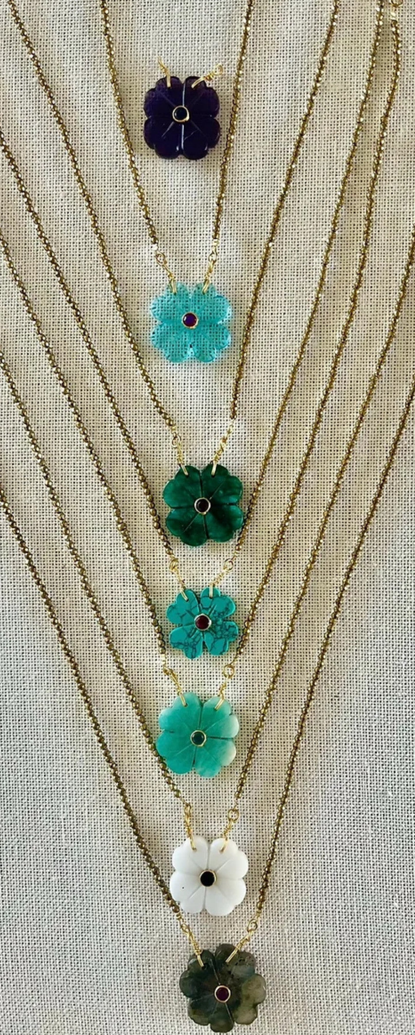 Sautoir flower élastique , Labradorite : protection, absorption des énergies négatives, environnantes…