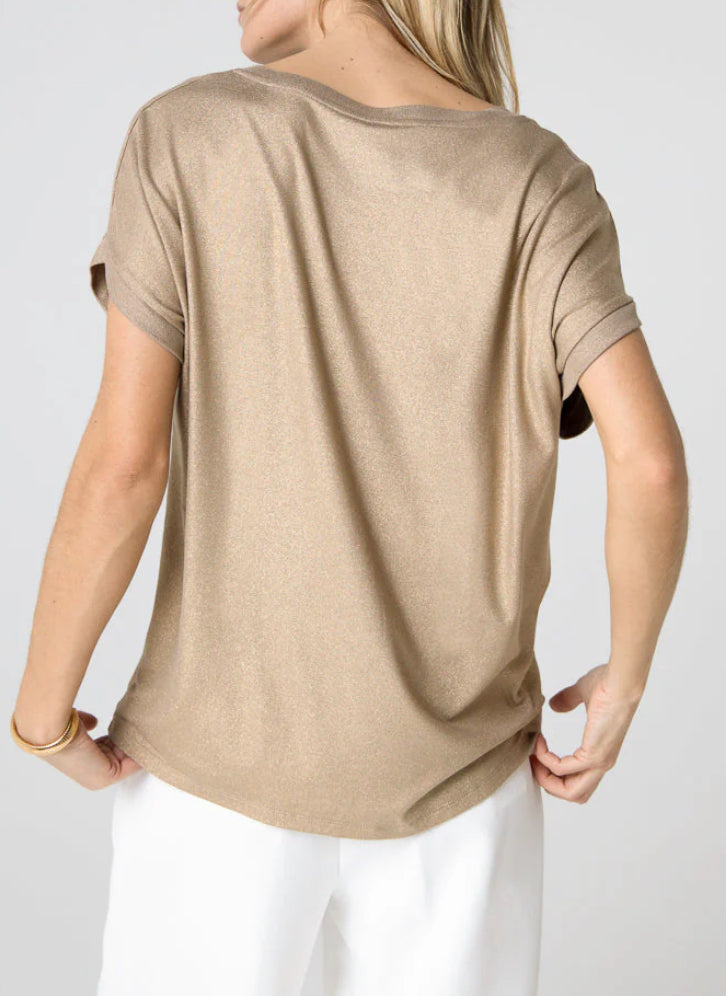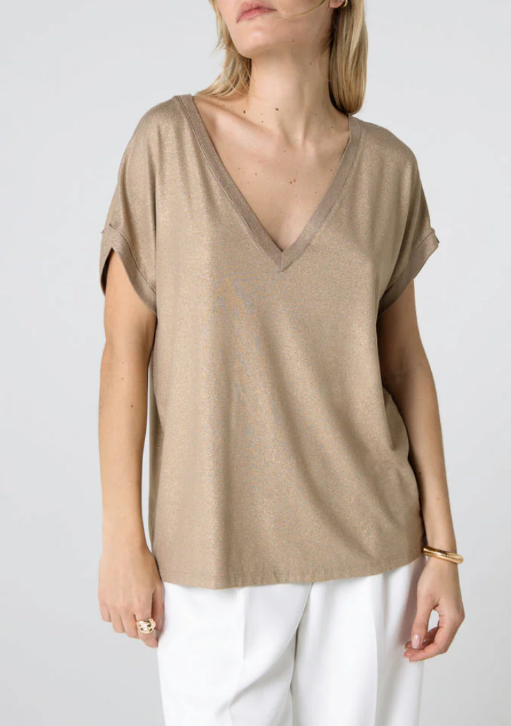 T-SHIRT COFFEE LATTE COL V MANCHES COURTES - MAJESTIC FILATURES