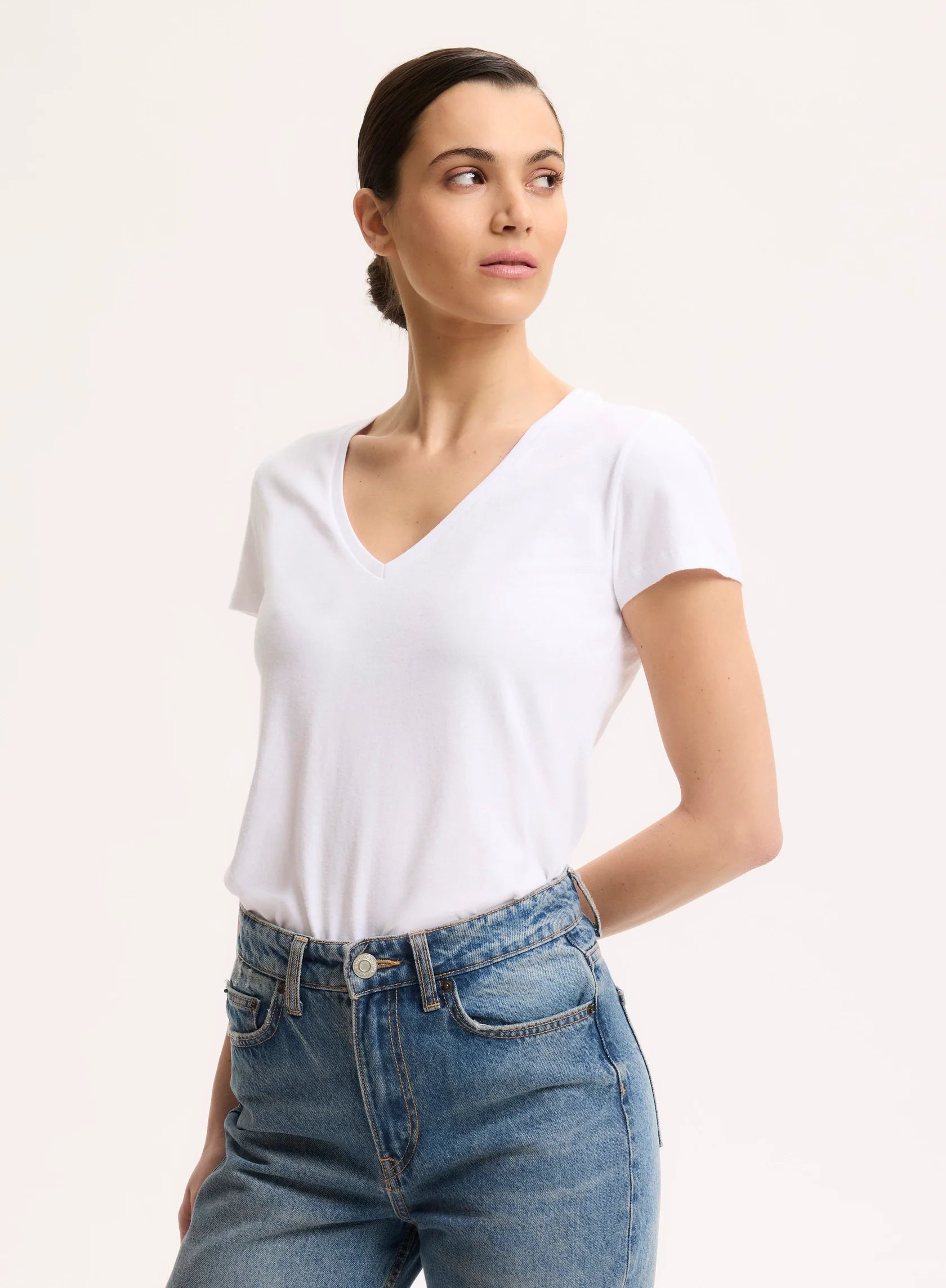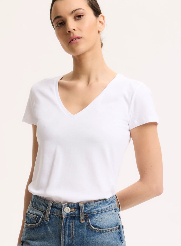 T-shirt Julia blanc, manches courtes et col V en 100% Deluxe Coton