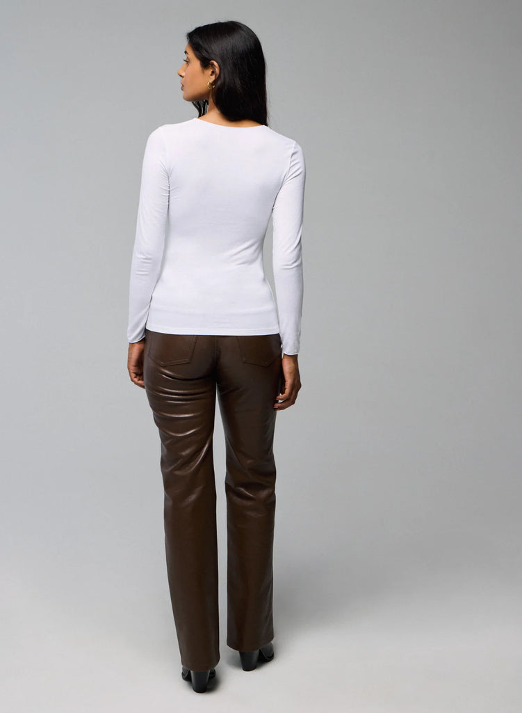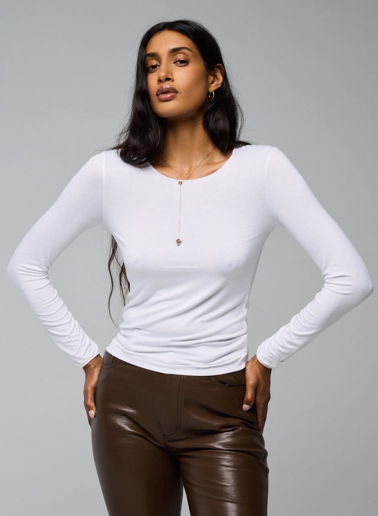 shirt Blanc Seconde Peau Col Rond Manches Longues en coton /cachemire, au tombé près du corps et au toucher ultra doux. Sa matière naturelle extensible assure un confort optimal et une sensation seconde peau, idéale en sous-couche ou portée seule.