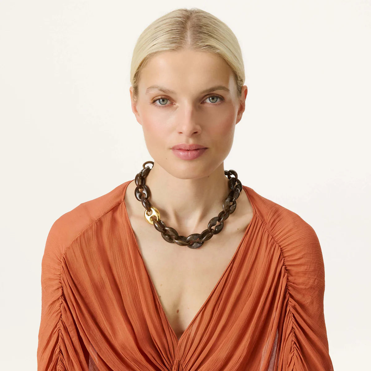 Le collier à maillons Small Turtle Necklace Short incarne la grâce et l'élégance. Ce collier présente un beau design qui donne à la chaîne un caractère fascinant. Fabriqué en acétate de haute qualité, le Turtle Necklace Short n'est pas seulement un accessoire élégant, mais aussi agréable à porter grâce à son poids très léger.