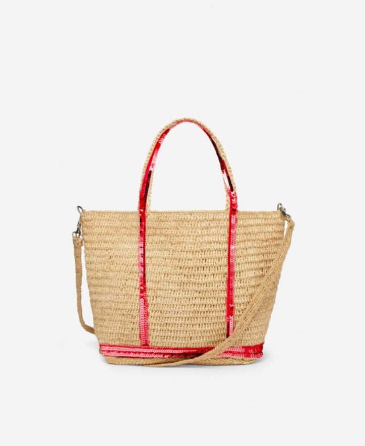Sac cabas au format XS en raphia et sequins.