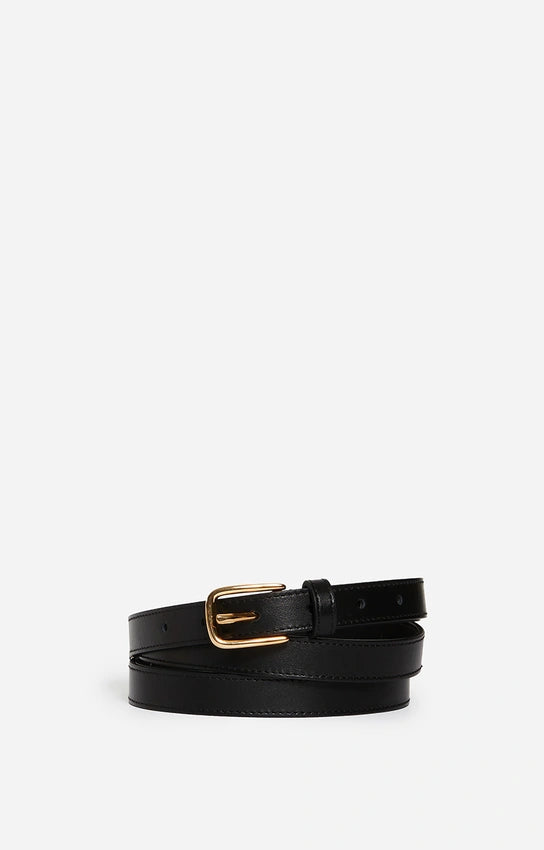 Cette ceinture en cuir noir est l'expression ultime de l'élégance discrète et de la fonctionnalité. Confectionnée dans un cuir de vachette lisse, elle se distingue par sa finition lisse et son design minimaliste. La boucle en métal doré, subtile et raffinée, ajoute une touche de sophistication sans détourner l'attention de la simplicité du cuir. La ceinture est dotée de plusieurs trous. Polyvalente, elle peut être associée à une variété de tenues, qu'il s'agisse de jeans pour un look décontracté ou de pantalons habillés pour une allure plus formelle. Cette pièce essentielle et intemporelle est un ajout indispensable à toute garde-robe, offrant à la fois style et fonctionnalité avec une élégance sobre.