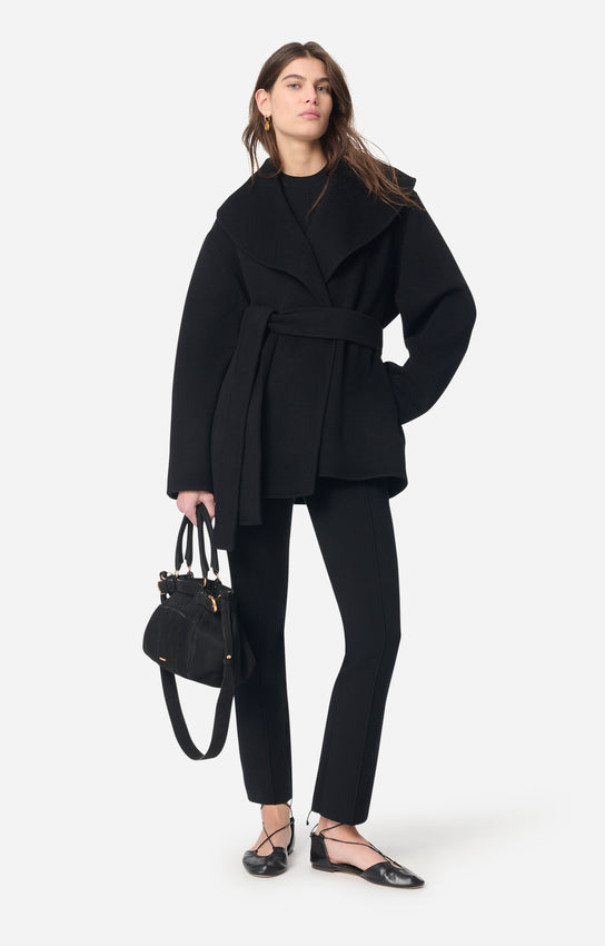 Entre tailoring et décontraction, ce manteau ceinturé redéfinit la silhouette avec une allure moderne et intemporelle.