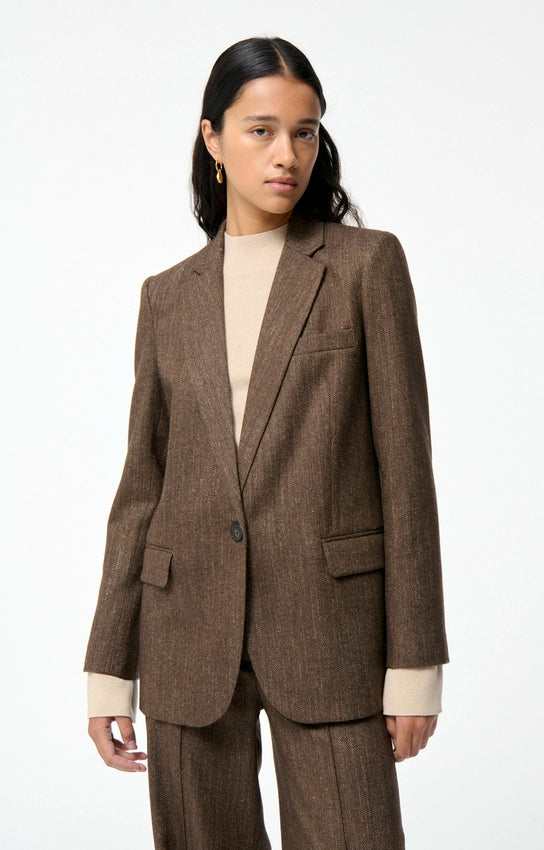 Un tailoring inspiré des vestiaires masculins, au tombé impeccable : la veste idéale pour un style affirmé et intemporel.