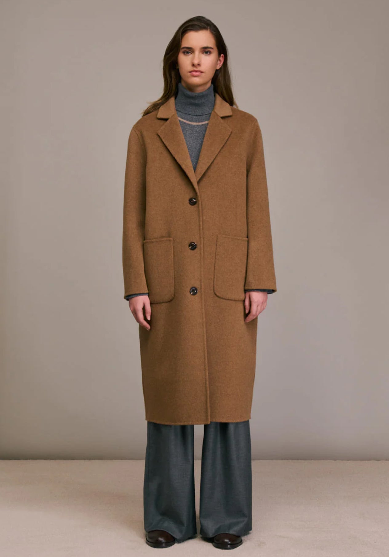 Manteau avec col à revers et manches longues. Poches plaquées. Fermeture par boutons sur le devant.