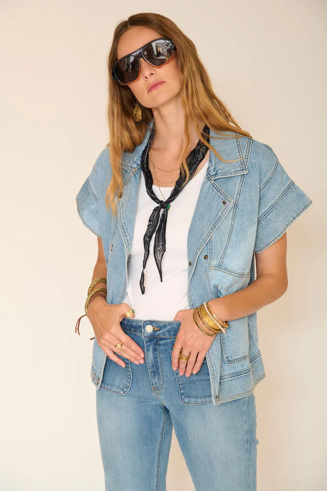 La veste Wagner Osaka revisite l’iconique denim avec une allure résolument moderne. Sa coupe droite sans manches et ses surpiqûres marquées lui donnent un caractère affirmé, tout en restant facile à superposer. Confectionnée dans un jean au délavage clair, elle apporte une touche casual et authentique à toutes les silhouettes. À porter sur un tee-shirt ou une blouse, la veste Wagner est la pièce idéale pour structurer un look décontracté au quotidien.